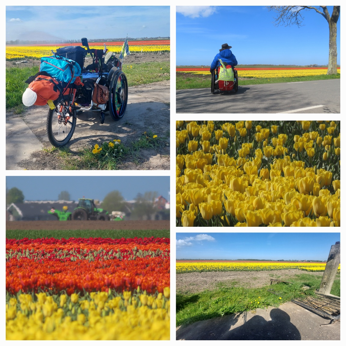 Onderweg, net voorbij Rijnsaterwoude, kwam ik toch nog een keer langs een mooi tulpenveld waar ik nog even foto’s heb gemaakt. Daarna rolde ik naar huis door een voor mij erg bekend gebied. Het was vandaag maar een ritje van zo’n 13km. maar in 3 dagen heb ik toch een totaal van 73,8km gerold volgens m’n fietscomputer. Dus ik heb weer even goed kunnen oefenen.