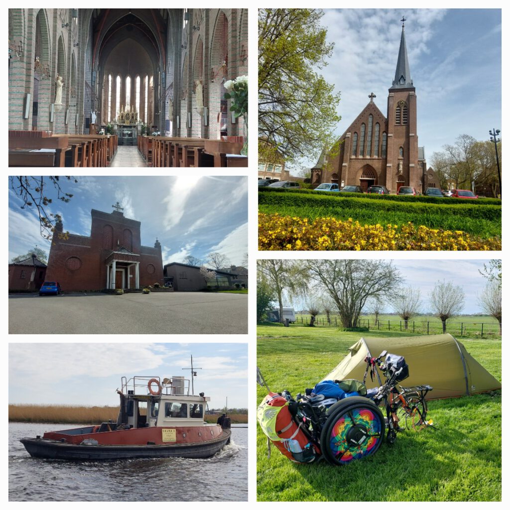 Daarna rolde ik naar Hillegom. Hier kwam ik eerst langs de PKN kerk die open was. Daar met mensen gesproken onder het genot van een kopje thee. Kreeg uitgebreid uitleg over het ontstaan van het gebouw en over de gemeenschap. Daarna rolde ik nog even langs de katholieke kerk, hier kon ik alleen in een deel van de kerk maar kon de rest wel door de glazen wand bekijken. Onderweg haalde ik ook een broodje voor lunch die ik met het stukje kaas uit m’n tas op heb gegeten.